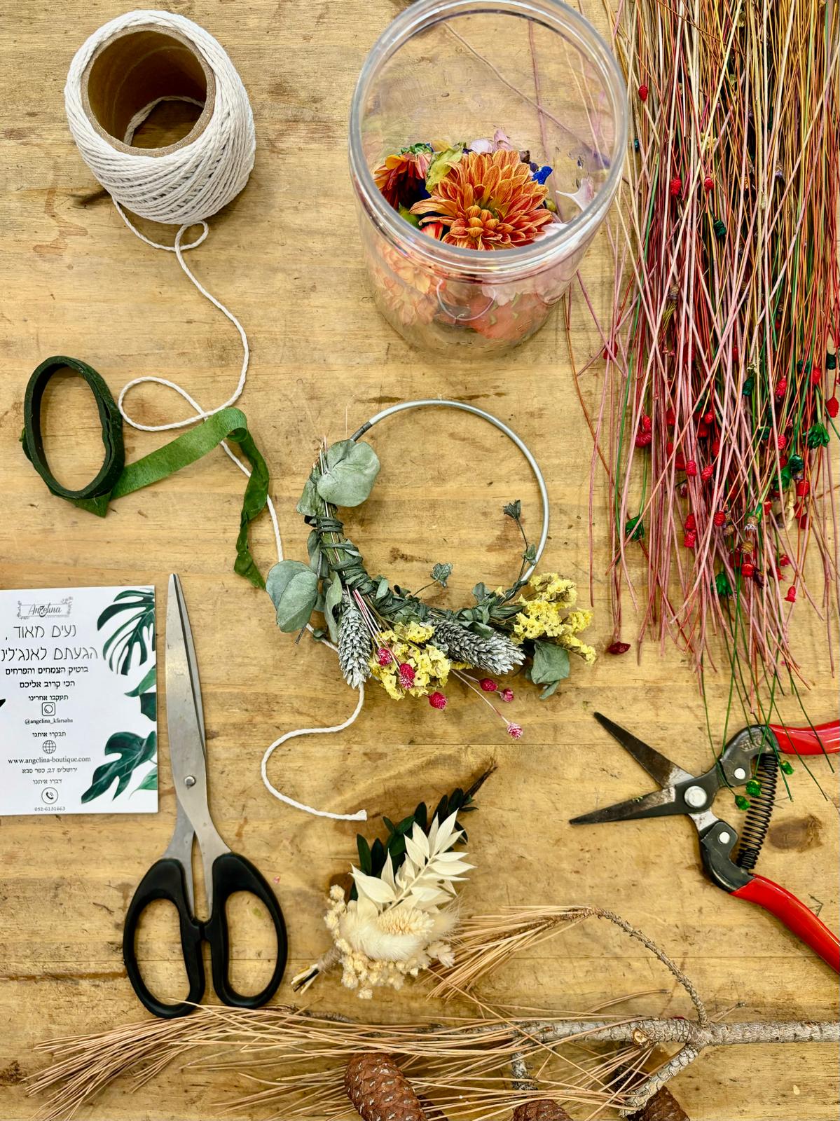 - 🎁 כל הציוד כלול: כל משתתף יקבל את כל הציוד הנדרש להכנת ה-Wreath, כולל דקורציות, חומרים טבעיים 🍃, צבעים 🎨, סרטים 🎀 ועוד
